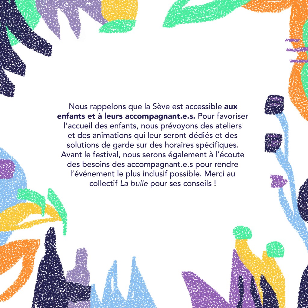 La Sève est un festival autogéré et participatif, ce qui signifie que toutes les personnes qui participent au festival contribuent à son déroulé en participant aux tâches qui rendent possible la vie collective. Il n’y a donc pas de distinction entre participant·es, les organisateur·ices d’atelier et les artistes puisqu’en définitive tout le monde est participant·e et contributeur·ice. Par conséquent, nous ne pouvons rémunérer personne y compris l’équipe d’orga au sein de laquelle nous sommes toustes bénévoles.