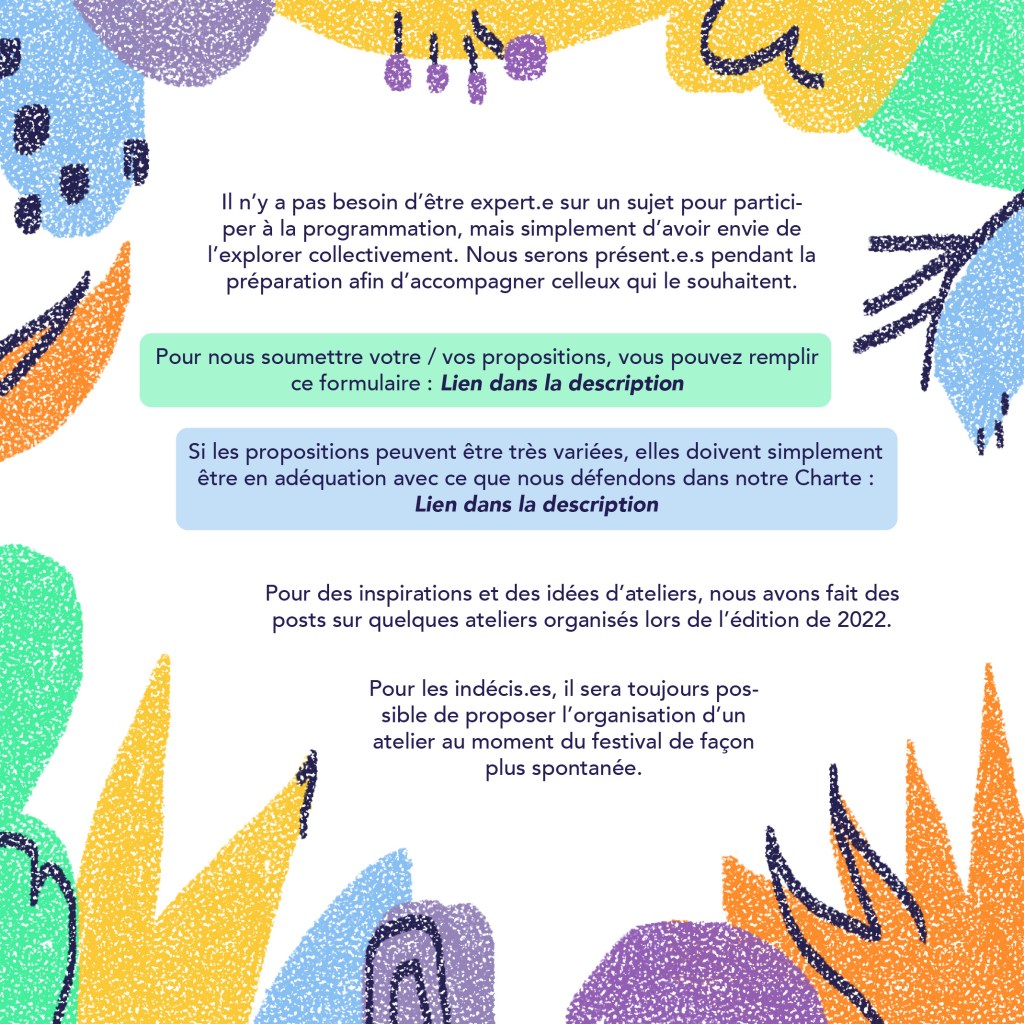 Pour les indécis·es, il sera toujours possible de proposer l’organisation d’un atelier au moment du festival de façon plus spontanée.